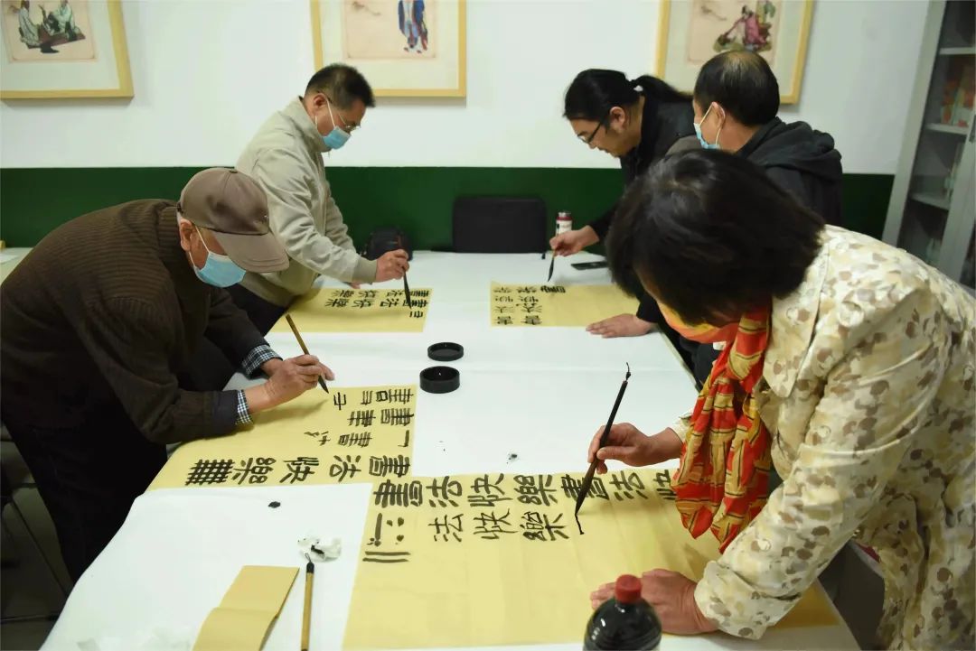 老同志互相切磋书法