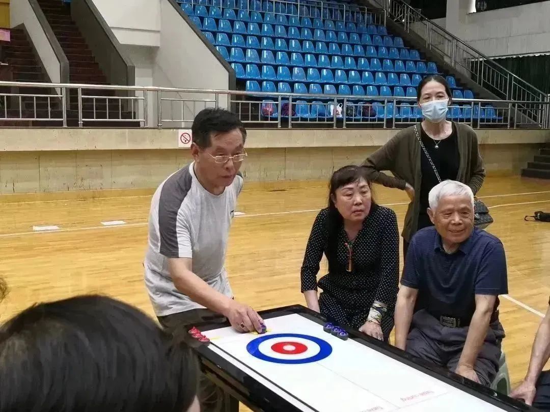 参加桌上冰壶球比赛