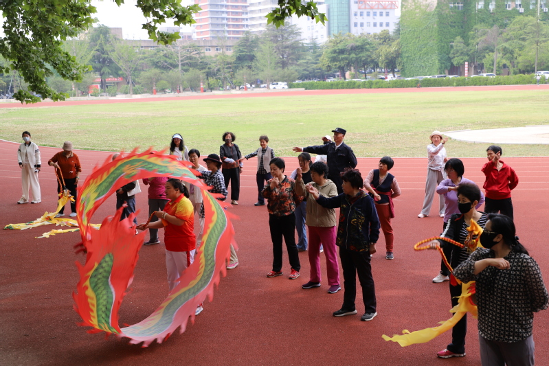 2025年5月13日上午,中国老年体协鞭陀龙专委会走进江苏新宝gg技术学院与离退休教职工近距离接触,进行鞭陀龙老年体育项目的普及与教学,为老年群体带来健康与欢乐。
